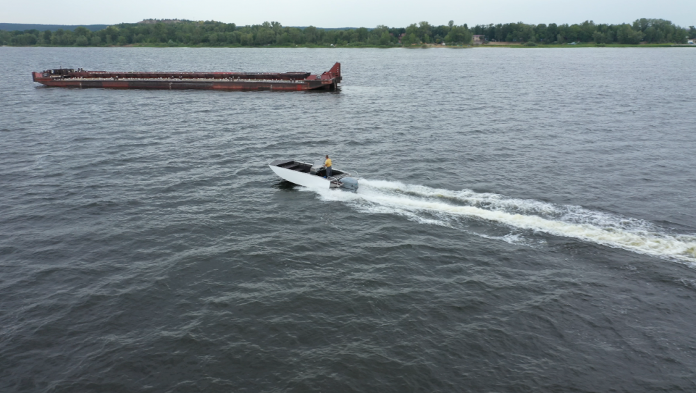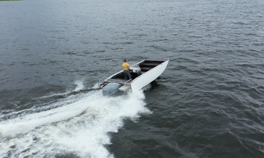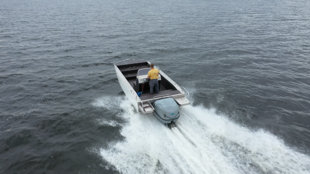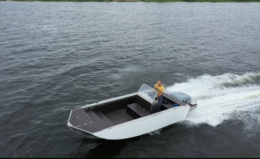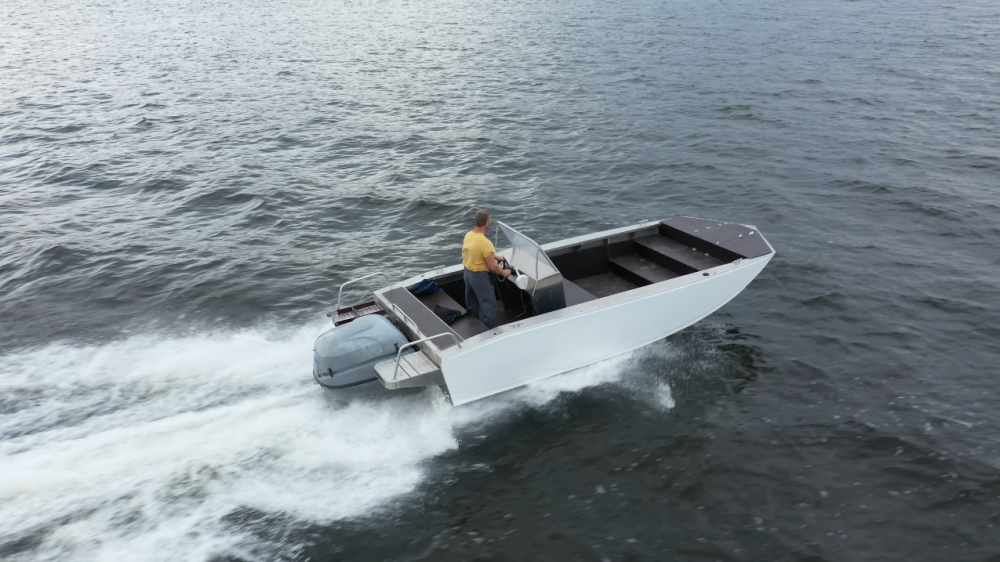 За счет установки стационарного, подвесного водомёта, рабочее пространство внутри катера использовано максимально.