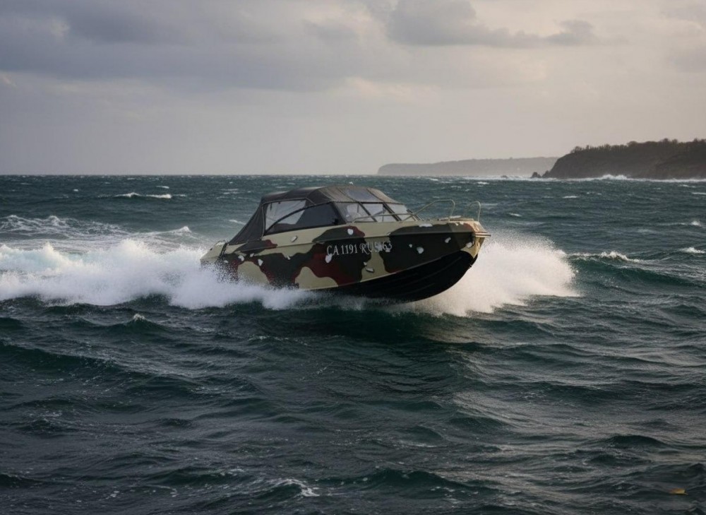 Создан на основе патента «107706 Буря-4» (срыв потока, спасательные операции в тяжёлых метеоусловиях, лодка без брызг). Разработанная нашими конструкторами технология поперечного реданирования "Игуана" позволяет значительно увеличить мореходные характеристики катера в экстримальных условиях. Стабильный прирост скорости от 10% до 25% с параллельным улучшением управляемости.