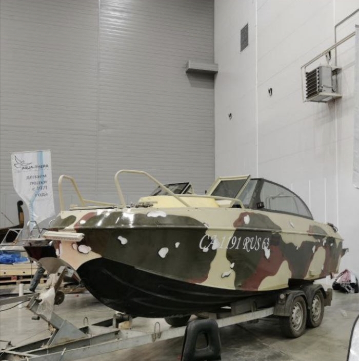 Характеристики: длина - 6,7 м, ширина - 2,5 м, высота - 2 м, общий сухой вес - 924 кг, килеватость - 18 градусов, кол-во пассажиров 5-8 человек, мощность мотора - 150-300 л/с., материал - алюминий АМГ5.