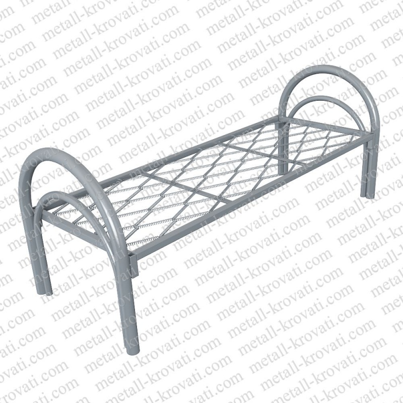 - Тип: одноярусная кровать металлическая односпальная, с двумя ребрами жесткости, круглыми спинками и двойными ножками