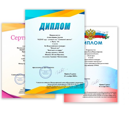 Сертификаты подтверждены лицензиями. Мы являемся резидентами Сколково. Заходите на сайт МЦОиП ру и выберите десятки олимпиад после прохождения которых вы можете заказать диплом.