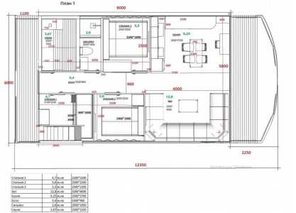 Длина: 12 м. Ширина: 6 м